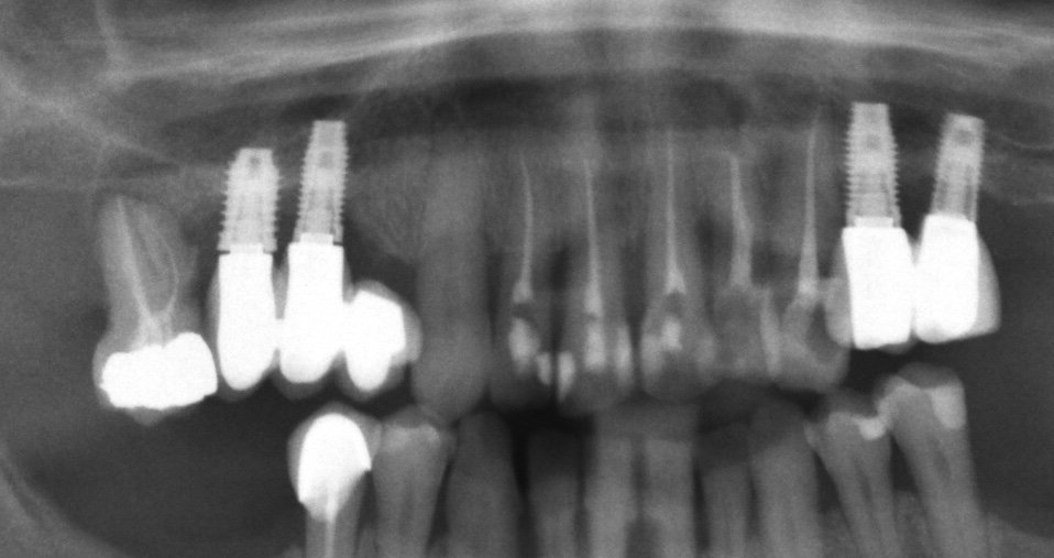 Como cirujano de una de la clinicas que colaboro me mandan esta rx para determinar que implantes lleva en el primer cuadrante para poder realizar la rehabilitacion protesica de nuevo.