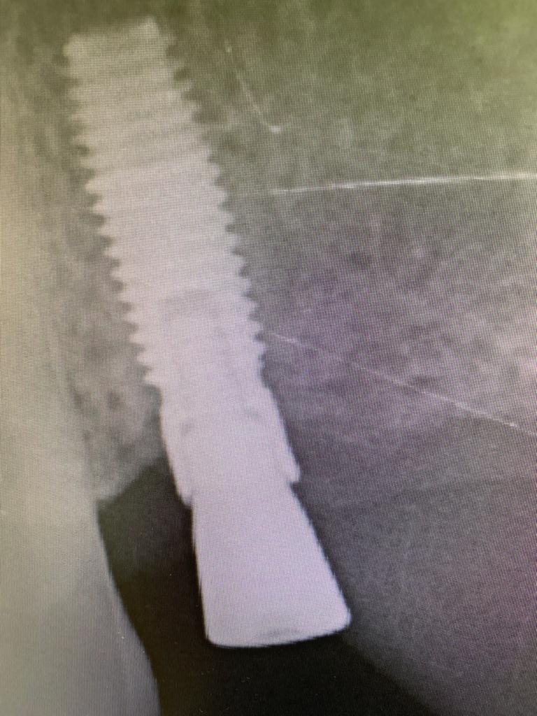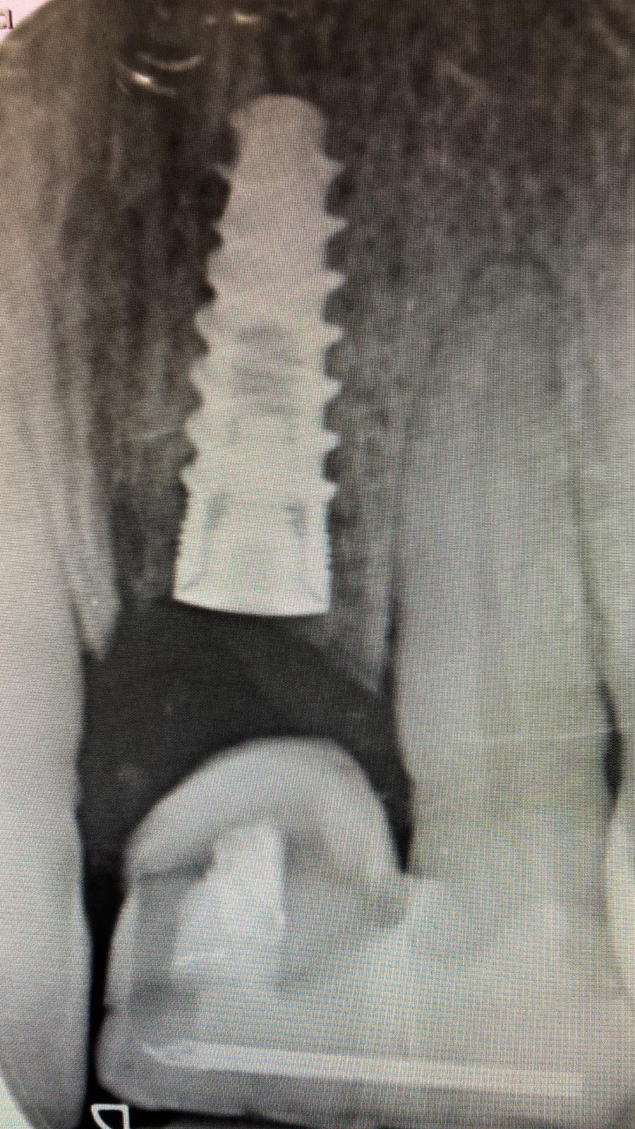 Implante con 20 años, dice el paciente. el tornillo de cicatrización no es el suyo, le pusieron uno que tenia por ahí. muchas gracias compañeros.