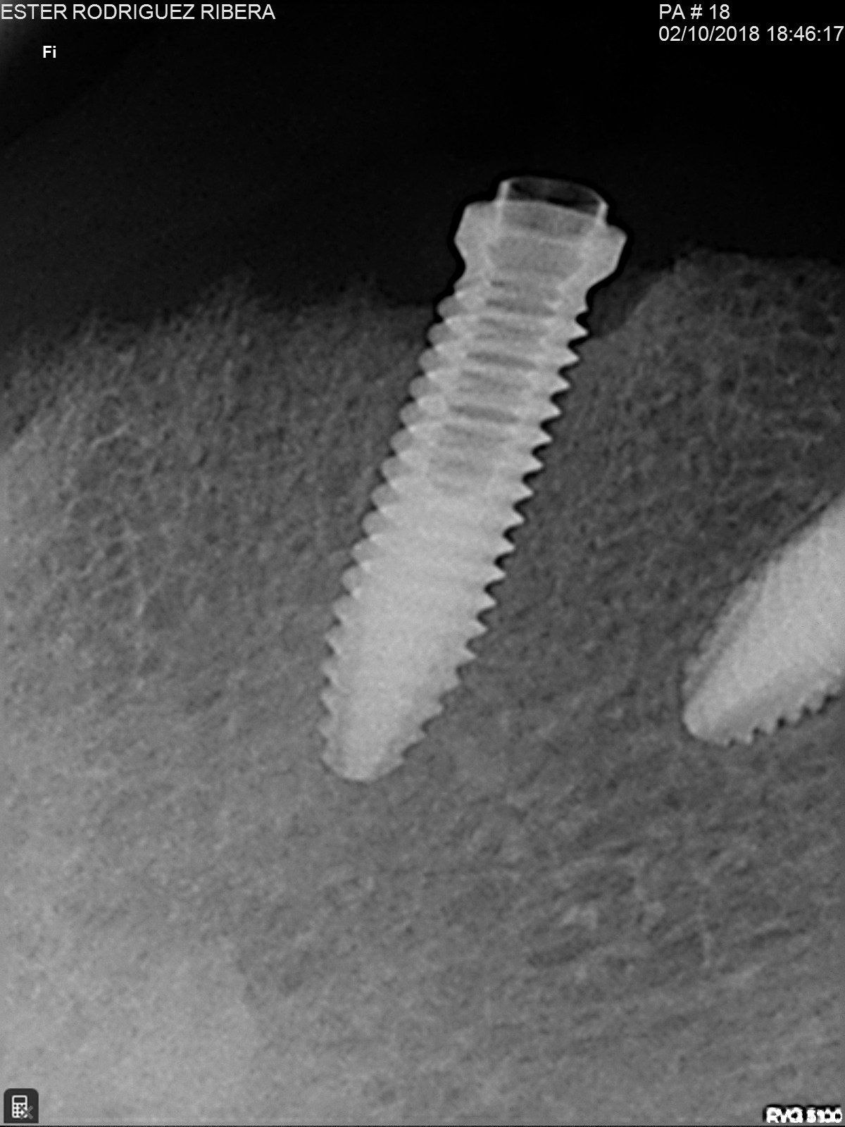 Buenas tardes compañeros Adjunto periapical para poder descubrir de que implante se trata. Es afectada de Idental. Gracias de antemano.