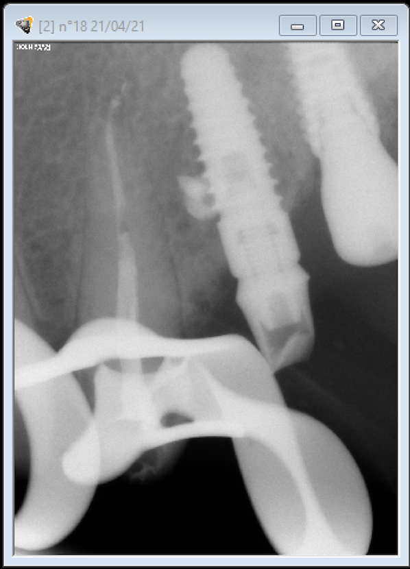 Buenos días. OS adjunto las fotografías de las periapicales de un implante colocado en la pieza 24, para que me ayudéis con la identificación.